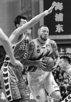 上海嗶哩嗶哩隊球員明納拉斯(中)在比賽中持球突破。 新華社記者 丁汀攝