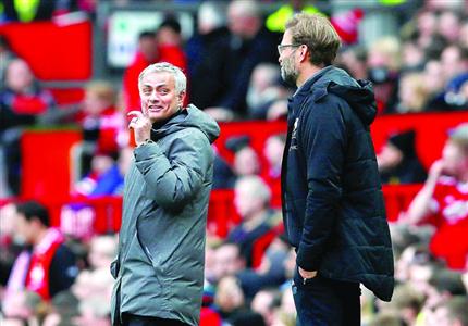 穆里尼奧(左)與利物浦隊(duì)主教練克洛普在場(chǎng)邊交流 /新華社