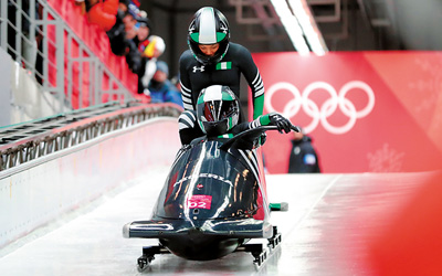 | 尼日利亞選手阿迪貢/奧米歐加在平昌冬奧會雪車比賽中。 |