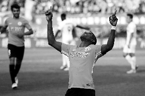 阿約維慶祝進(jìn)球。 新華社發(fā)