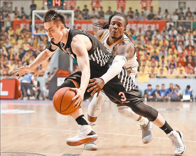 4月17日,遼寧隊球員趙繼偉(左)突破廣廈隊球員福特森的防守。dY8安康新聞網