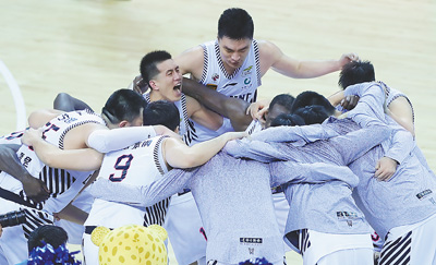 | 4月22日,遼寧隊(duì)球員在賽后慶祝奪冠。 |