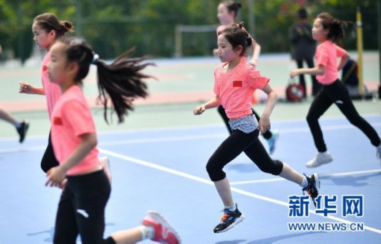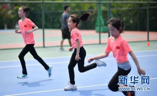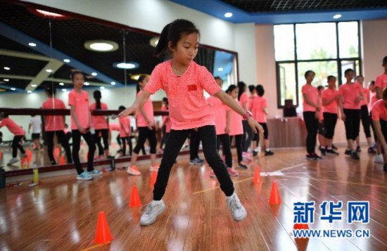 ↑小運(yùn)動員們參加體能測試。新華社記者郭程攝