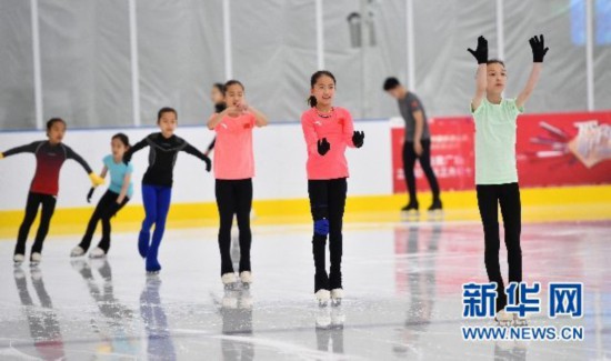 ↑參加海選測試的小運(yùn)動員們在冰上訓(xùn)練中。新華社記者郭程攝