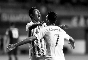 雷納迪尼奧(左)不僅自己進球,還幫助扎哈維破荒。信息時報記者 陸明杰 攝