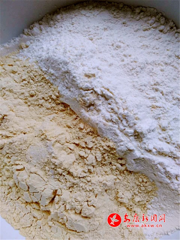 兩摻面,一半豆面與一半麥面在漢江水的調(diào)和下,經(jīng)過反復(fù)搓揉摻搟,兩種面粉化作一種新的食材——兩摻面。