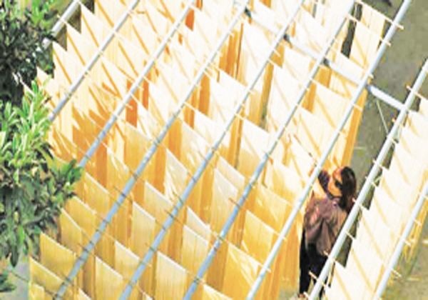 立冬之后,雨下個沒完。李云濤一直在等待太陽的出來。憑著從父親那兒得來的經驗,上好的麥面加入鹽水,反復揉搓,再上料斗、壓制、上桿、晾曬,成為老百姓餐桌上……