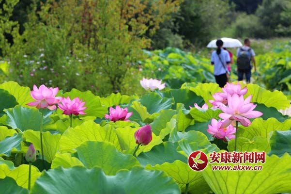 8月7日,游客在寧陜縣悠然山觀賞荷花。