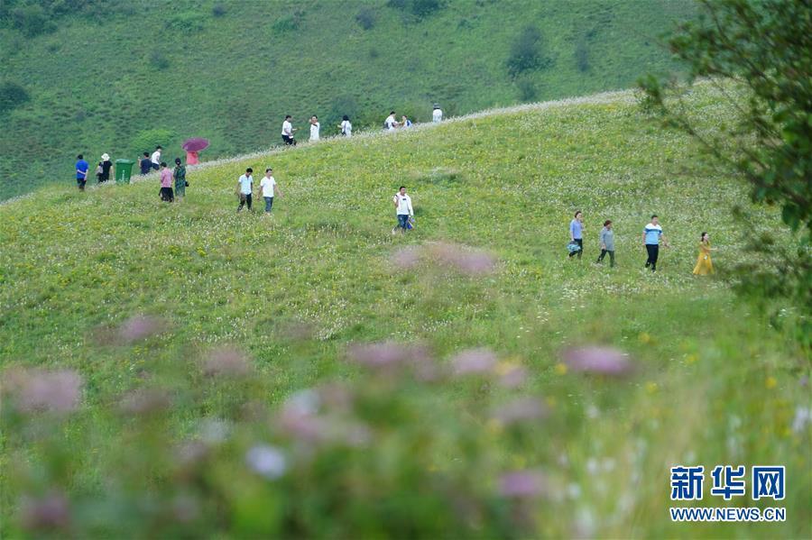 7月21日,游客在神田草原上游玩。