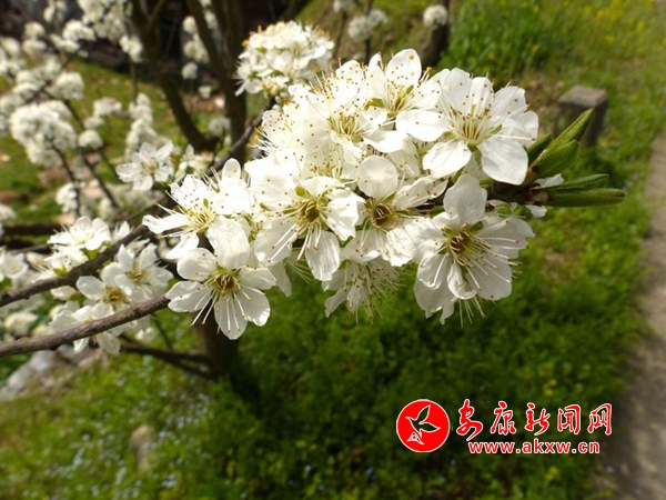 機(jī)關(guān)樓前的兩樹(shù)白花,印證著廉潔清正。