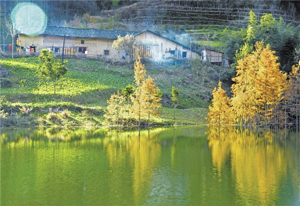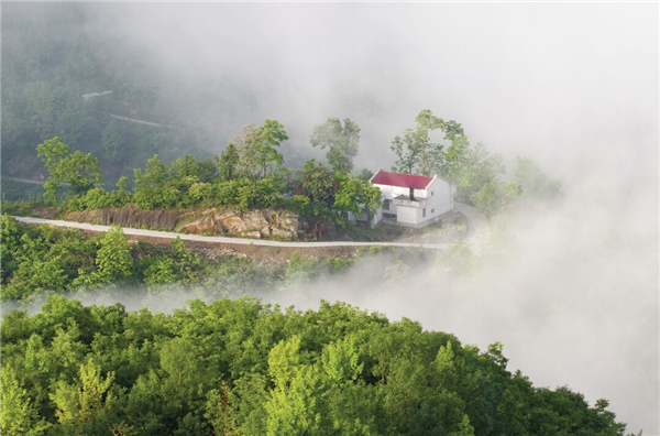 在水中,一條油潤潤的小路,融匯了大地的物語,春雨的澆注,還有輕輕觸碰就會變幻的神秘。道路的兩邊,是造型夸張要滴出翠來的植物,阻擋了行人的腳步,牽絆了路人的衣服,會給那些衣服沾染上艷麗的花粉,在深夜里都會散發(fā)出一股醉人的清氣,仿佛有什么該想而未想,心里蘊(yùn)滿了不能為人道皎潔的白月光。沿著那條路,就是在水中宛若樓臺亭閣一般的房屋,黑瓦房、白墻壁,杏花、桃花、茉莉花爭相簇?fù)恚孔颖闳缰蒙砥渲械膵雰毫。還有小奶狗在屋前悠閑地打盹,太陽直射下來,貓也走來湊湊熱鬧,貓的眼睛碧藍(lán)澄澈,仿佛天使之瞳,總是帶著先知或者驚異審視的表情……而與此相對的,就是炊煙了,唯有炊煙將我們拉回世俗庸常之中,飯菜的香氣,去年果木熏的臘肉,農(nóng)家自己釀的一碗包谷燒,啊,真想喝點(diǎn)小酒,酒的美妙不在于入口的辛辣,而在于微醺之時(shí),那種難以控制的快樂!古來圣賢皆寂寞,唯有飲者留其名,明天的事,明天再說吧!