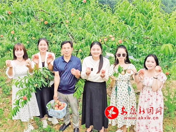 “水蜜桃熟啦,歡迎大家來(lái)采摘!”陳顯攀一邊說(shuō),一邊搓著手。果園里是一群正在采摘桃子的游客,最惹眼是身著彩衣的年輕姑娘們,她們挎著竹籃,穿梭在桃樹(shù)林間,艷陽(yáng)映紅了蜜桃,也映紅了她們的臉龐。