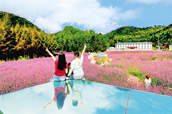 中秋節(jié)期間,平利千家坪森林公園天書峽馬鞭草花競(jìng)相怒放。如畫的景色吸引眾多游客前來賞景打卡。(詹永桂 攝)7NW安康新聞網(wǎng)