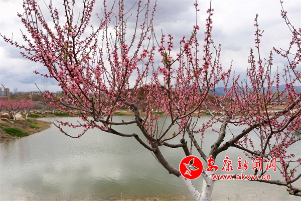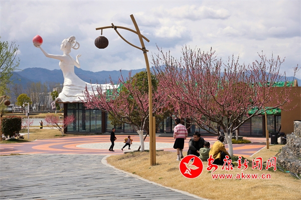 景區(qū)紫葉李、桃花競(jìng)相綻放,吸引市民前往觀賞。