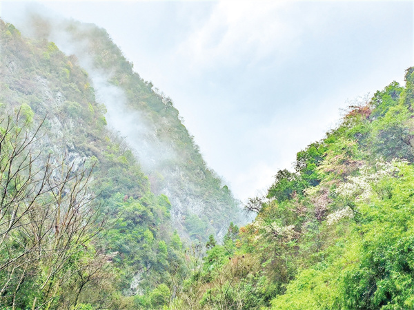推開房門,晨霧尚未散盡,細(xì)雨斜斜地織著。老人們常說“有雨山戴帽,無雨半山腰”,這話在此時格外應(yīng)景——裊裊云霧沉甸甸地壓住遠(yuǎn)處的峰頂,像給每座山頭都戴了一頂灰絨帽子,讓群山失去了往日的險峻,只留下青灰色的輪廓,恍若一幅優(yōu)美的寫意水墨畫。等到午后雨勢稍小,云霧退到半山腰,卻始終戀著大山不肯消散。隨著一陣陣微風(fēng)拂起,那些云霧像被吹落的玉帶,在墨綠的樹林間織出半透明的簾幕。4wc安康新聞網(wǎng)