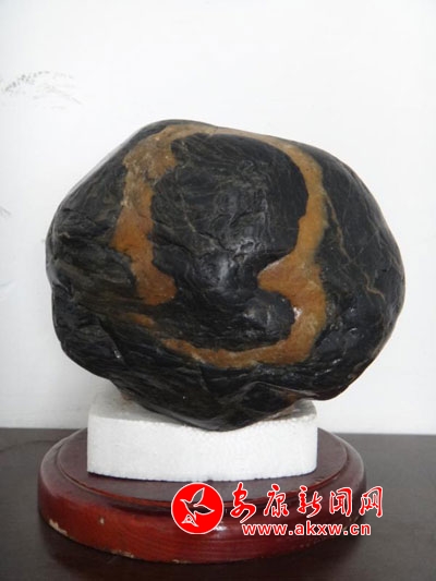 此石為漢江水墨石,亦稱(chēng)金帶石,石長(zhǎng)22㎝、寬20㎝、高16㎝.石形完整,色彩對(duì)比明顯,頭像輪廓比例協(xié)調(diào),人物五官清晰可見(jiàn),面部表情呈沉思狀,尤以“魯迅”先生標(biāo)志性小寸發(fā)和八字胡最為傳神,令人嘆為觀(guān)止!