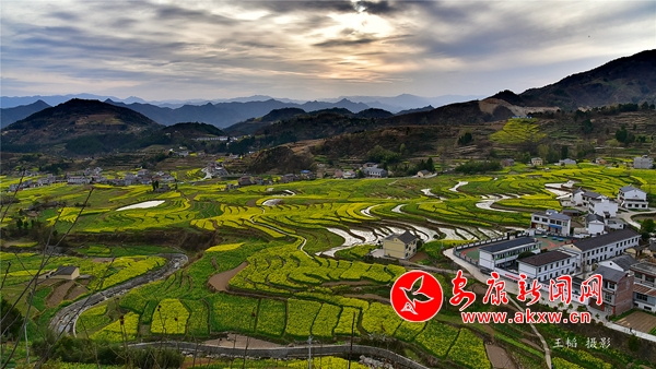 依著山勢(shì),那些黃綠色,繪出最自然的線條。遠(yuǎn)山如黛,陪著田埂上老農(nóng)和耕牛,默契的一起把身影倒影在水田。點(diǎn)綴在田園民居的炊煙裊裊,如緩緩落下的夕陽,靜謐、悠然,讓人眷戀。
