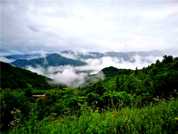 小橋,山澗的溪流;田園,吃草的耕牛;花草,池塘的荷花......一邊淋著淅淅瀝瀝如發(fā)如絲的毛毛細雨,一邊在薄霧朦朧中散步,置身在這天然氧吧中,看天看地看山看水看滿山云霧繚繞,看自然和諧之美,看群山簇擁我于懷抱之中,空曠靜謐中汲取一塵不染的力量與信念。極目所致,思緒萬千,腦海里寄存的是古人話語“非淡泊無以明志,非寧靜無以致遠”,恐怕也只能是綠水青山中來實現(xiàn)自己的理想與愿望吧!