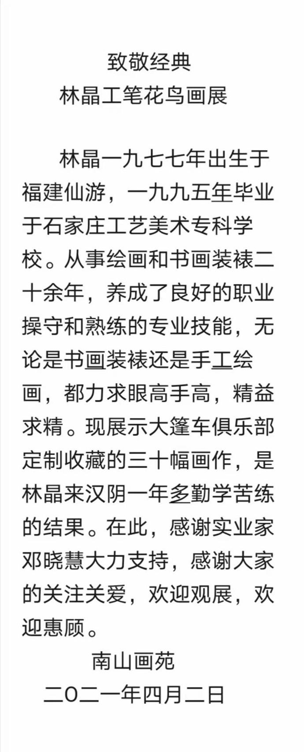 看現(xiàn)在林晶的繪畫,工筆花鳥畫可以說達(dá)到了惟肖惟妙,而且還有自己獨具的氣質(zhì)內(nèi)涵。她的工筆花鳥畫,已經(jīng)是掌握了精湛的傳統(tǒng)技法,諸如布局、章法、線描,以及對留白的把控等,都是很到位的。而且她還將個人審美觀融了進(jìn)去,尤其是秦巴漢水的文人意趣體現(xiàn),更有自己的色彩感覺,而其表現(xiàn)核心仍是傳統(tǒng)的藝術(shù)審美觀。