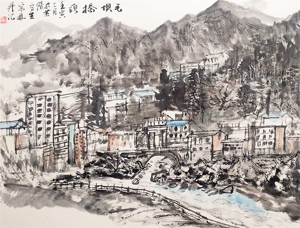 今年夏天我有幸參加了省文化廳三區(qū)藝術(shù)人才培訓(xùn),我隨陜西國畫院的耿齊、喬建業(yè)、白霜亮等老師,又一次踏進了紫陽。剛到毛壩一下汽車,熱浪撲面襲來。舉目望去,嵐山如黛、滿目翠綠、熱風(fēng)在兩腿間纏繞,好熱的紫陽,好藍的天!陜西國畫院的領(lǐng)導(dǎo)和老師,克服疫情和暑熱帶來的困難,發(fā)揮文化在鄉(xiāng)村振興戰(zhàn)略中的引領(lǐng)作用,重視基層美術(shù)創(chuàng)作和人才隊伍的培養(yǎng),用畫筆描繪青山綠水。為此,他們做了充分準(zhǔn)備和精心策劃,選擇在紫陽毛壩辦班,堅持晚上授課,白天觀摩寫生。老鄉(xiāng)的樓頂上、屋檐下是我們的教室,茶山上、鐵道旁是大家的課堂,小溪旁、樹蔭下到處是寫生的老師和學(xué)員。