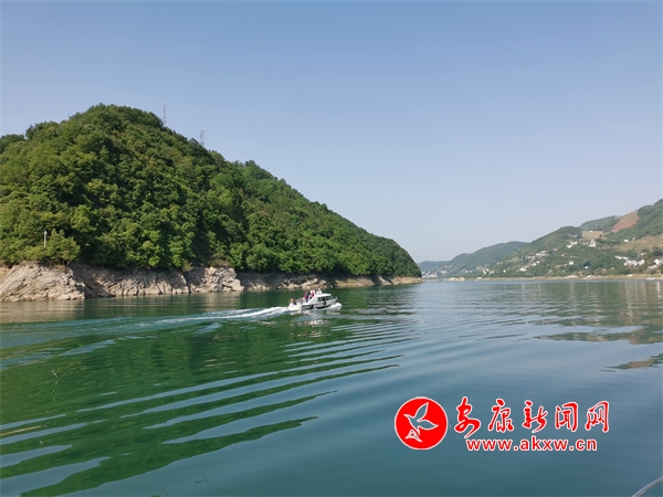 一路泛舟游覽,湖心遠(yuǎn)眺幾座翠綠的高山,那些山高低起伏,錯(cuò)落有序,像一條蜿蜓曲折的長(zhǎng)龍。