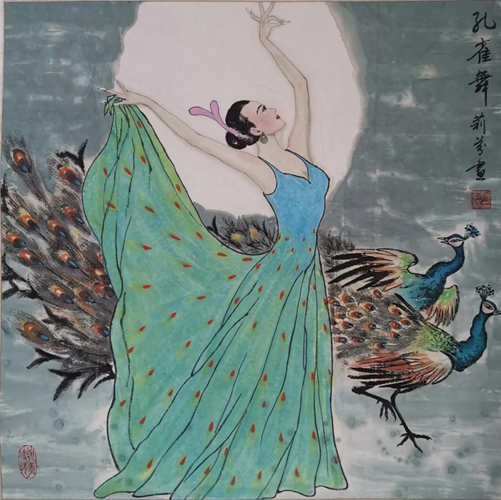 解大姐是陜北人,性格開朗、直率,說話中間或帶出一些濃重的陜北口音。雖說她主業(yè)從于政界,但她微笑的背后卻潛藏著不可掩飾的藝術天賦,揮發(fā)著令人奪目的藝術才情。繁雜的政務工作之余,她創(chuàng)作不輟,堅持不懈,居然在多個藝術門類收獲頗豐,好評連連。寫小說,她寫出幾十萬字的長篇出版發(fā)行;寫劇本,竟拍成了電影予以公映;學國畫,亦讓藝術界的大咖贊口不絕。我雖不才,空有浮名,但深耕藝界多年,對于其中的好賴還能分出一二。我感到,一個人的人品和藝品基本一致,解大姐的藝術,是扎根于她熟悉的陜北大地的藝術,是生長在山峁峁上經歷風霜雨雪的藝術,就像那陜北倔強的疙瘩柳,散發(fā)著對土地對生活的親近和熱情,對人生價值實現(xiàn)的不屈和追求。看到她的國畫新作,有陜北剪紙等民間藝術的滋養(yǎng)和影響,真切而樸實。她的飛天人物系列,泥古而不落窠臼,使我想到疙瘩柳條隨風擺動的婀娜風姿,溫溫潤潤,令人遐思和向往;她的花鳥畫作,使我想到陜北山野一片蒼茫之間,一朵兩朵盛開的山丹丹花,嬌艷得令人不忍觸手;她的山水畫作,又猶如陜北山原上嫩黃的棗花,洋溢著撲面而來的質樸、清新和率真之氣。