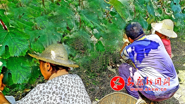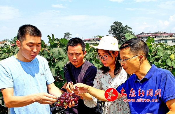 正午時(shí)分,在漢濱區(qū)五里鎮(zhèn)劉營村一組,一波人正在“黑牛”上躥下跳地帶領(lǐng)下,揮汗如雨踏草穿林,來到葡萄樹旁、甜桿兒林里、瓜前李下,拍照片、尋問題,完全不顧氣溫已達(dá)到“白熱化”階段。