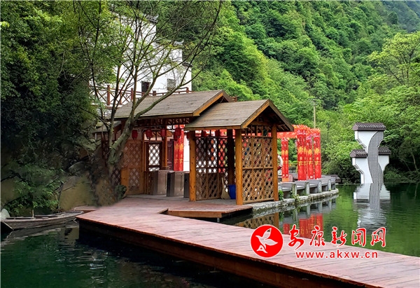 依山就勢的亭臺軒榭,與古木巉巖相得益彰,恰似保留了原始風(fēng)貌的古典園林。林木茂盛,目光從葉脈的縫隙間透過去,便會發(fā)現(xiàn),天地似在一灣水流里合二為一,邂逅的如此絕配。