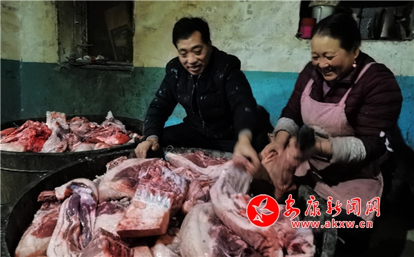 當(dāng)天,張成凱家一口氣殺了6頭豬,約1200斤,收入3萬(wàn)多元;張秀柱家殺了2頭豬,400余斤,收入約1萬(wàn)元。